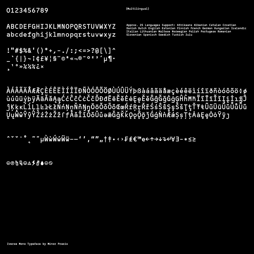 Iverse is a monospace font. The sans serif based structure that bring the new alternative for a stiff technoish font with the loose one. Clean and versatile for body copy and display.